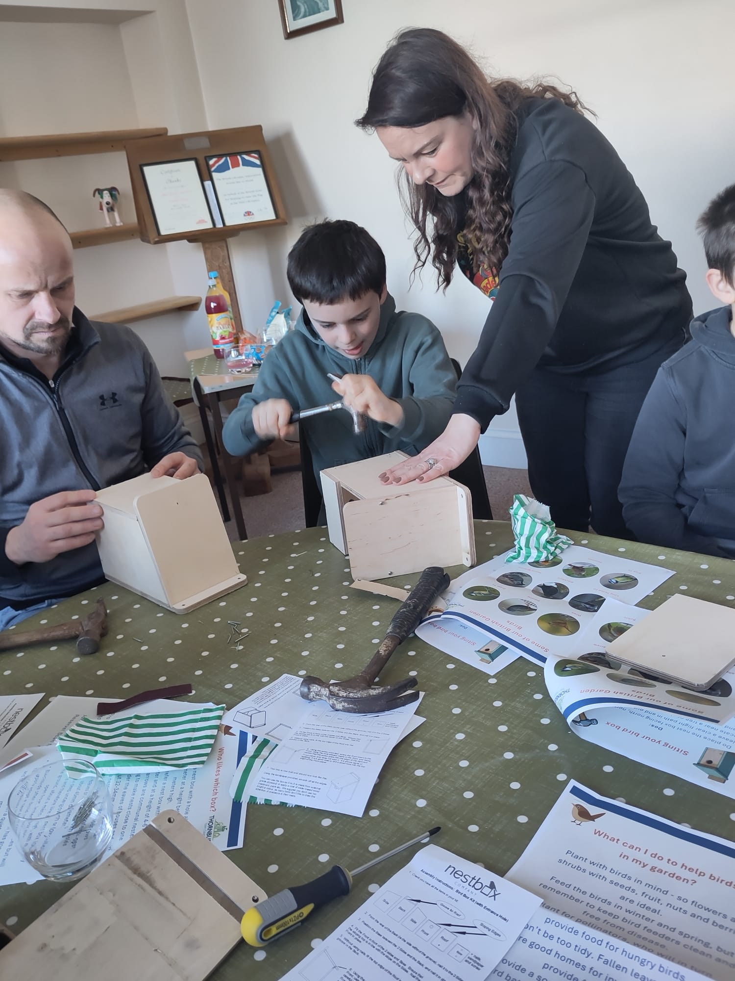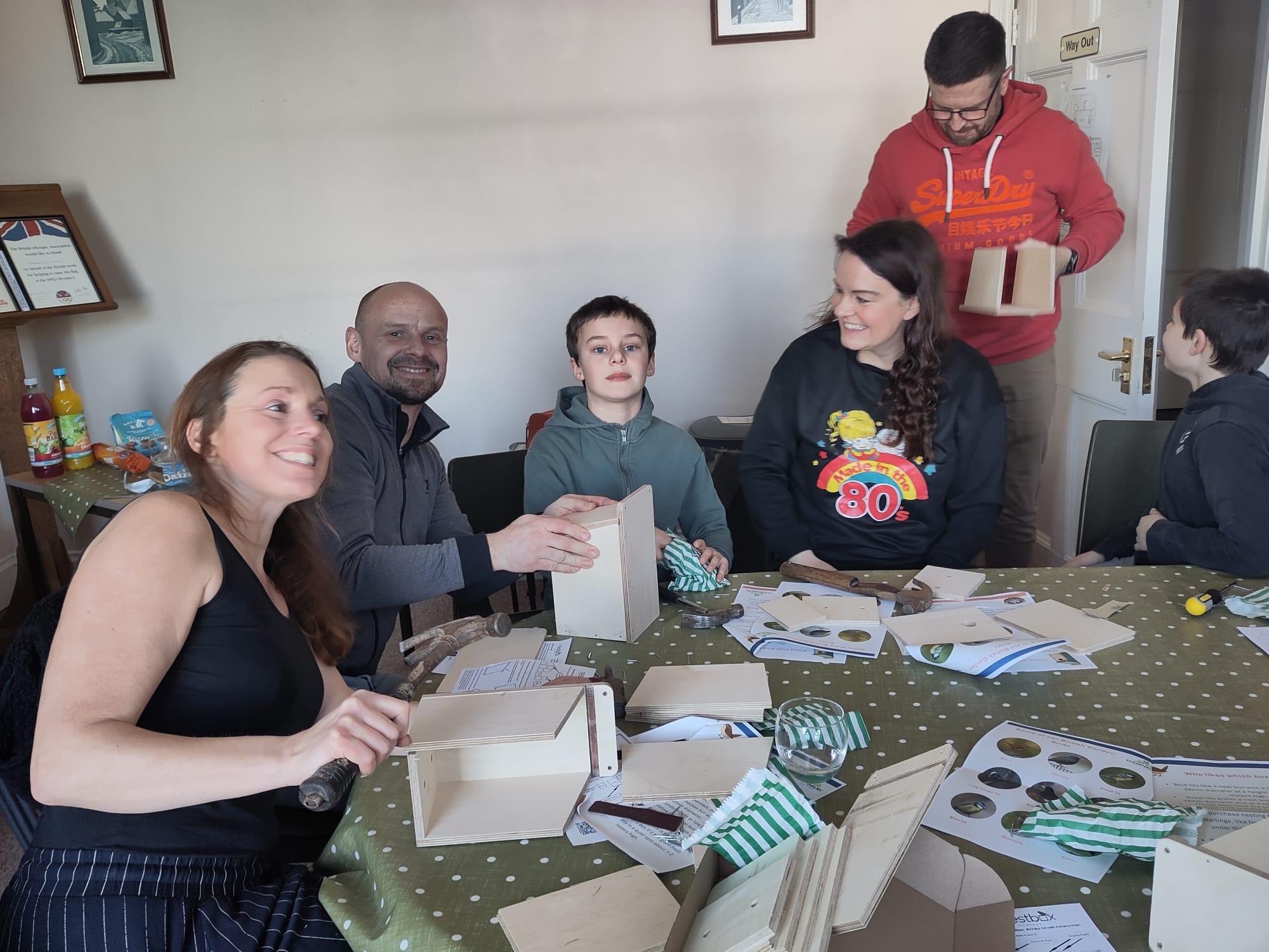 On Saturday 14 February, Valentine’s Day celebrations saw 11 adults and 8 children construct robin, blue tit, and great tit boxes from kits, combining creativity with a love of nature.